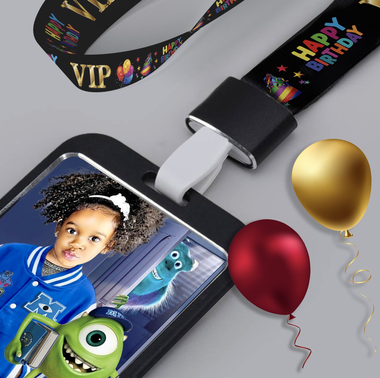 Our PVC VIP Birthday Invitations are printed in vibrant colors on a plastic PVC card, measuring 3 3/8″ x 2 1/8″, the size of a credit card. Each invitation is accompanied by a sleek black Aluminum Badge Holder, and the back side displays all the necessary information for your upcoming celebration. And to complete the VIP experience, our custom Birthday Lanyards are the perfect accessory for these one-of-a-kind invitations!