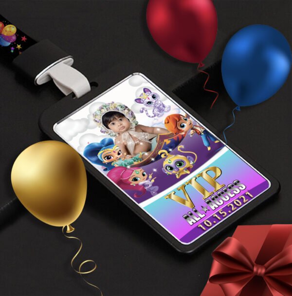 Our PVC VIP Birthday Invitations are printed in vibrant colors on a plastic PVC card, measuring 3 3/8″ x 2 1/8″, the size of a credit card. Each invitation is accompanied by a sleek black Aluminum Badge Holder, and the back side displays all the necessary information for your upcoming celebration. And to complete the VIP experience, our custom Birthday Lanyards are the perfect accessory for these one-of-a-kind invitations!