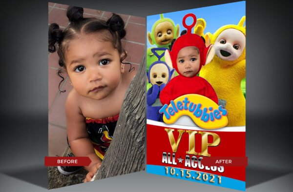 Make your child the star of their own special day with our Digital Backgrounds and costume Overlays! We’ll bring their imagination to life in stunning detail. Check out our before and after photos to see just how amazing your design can turn out. Throughout the process, we’ll work closely with you to ensure that your VIP Invitation matches your vision flawlessly.