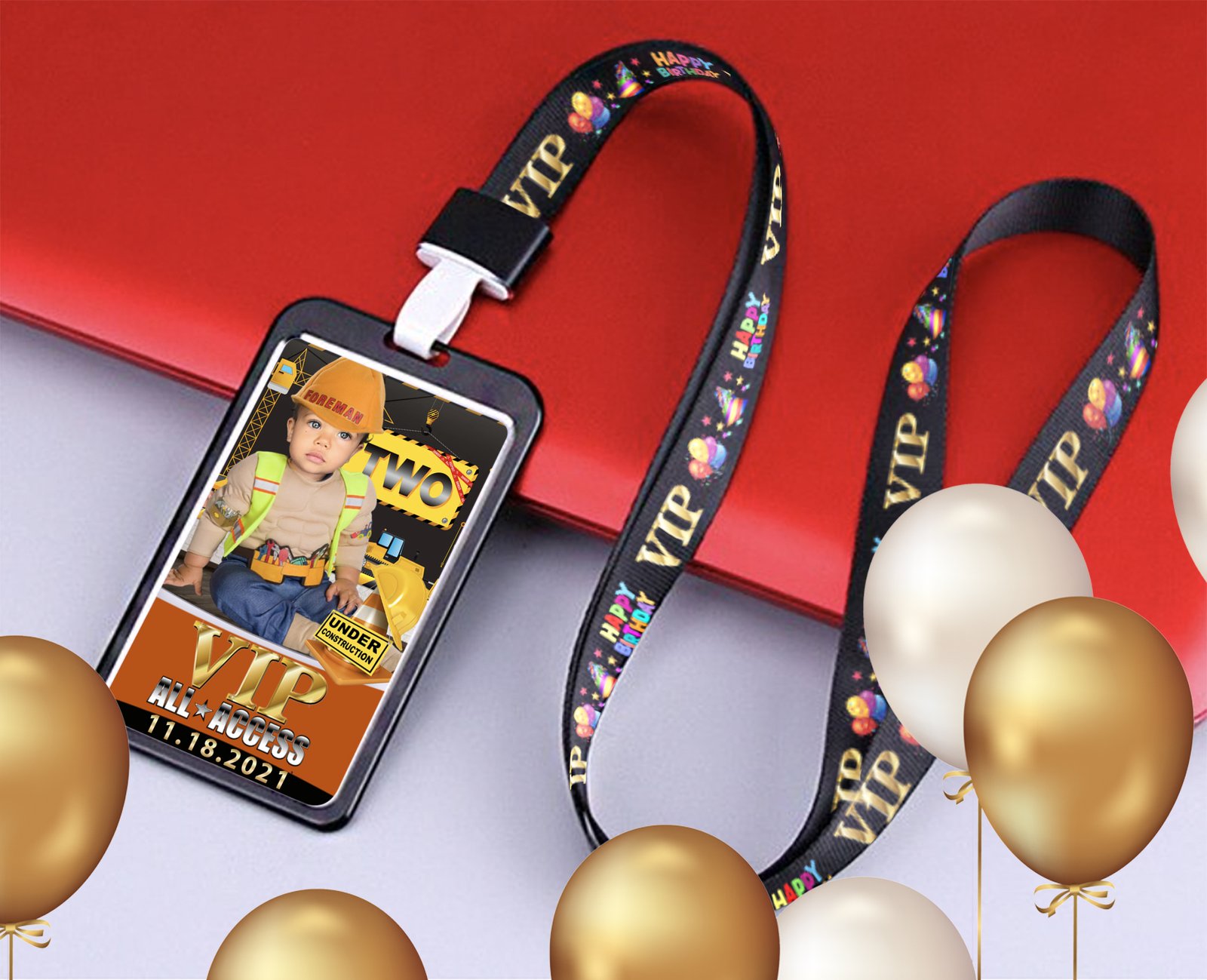 Our PVC VIP Birthday Invitations are printed in vibrant colors on a plastic PVC card, measuring 3 3/8″ x 2 1/8″, the size of a credit card. Each invitation is accompanied by a sleek black Aluminum Badge Holder, and the back side displays all the necessary information for your upcoming celebration. And to complete the VIP experience, our custom Birthday Lanyards are the perfect accessory for these one-of-a-kind invitations!